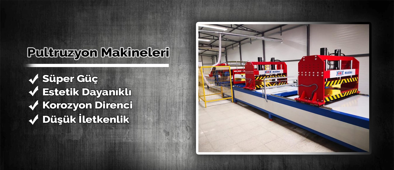 Pultruzyon makinelerini %100 yerli imalat olarak üretimini yapmaktadır. Aynı zamanda Türkiye’deki tek pultruzyon makineleri yerli imalat belgesine sahiptir.